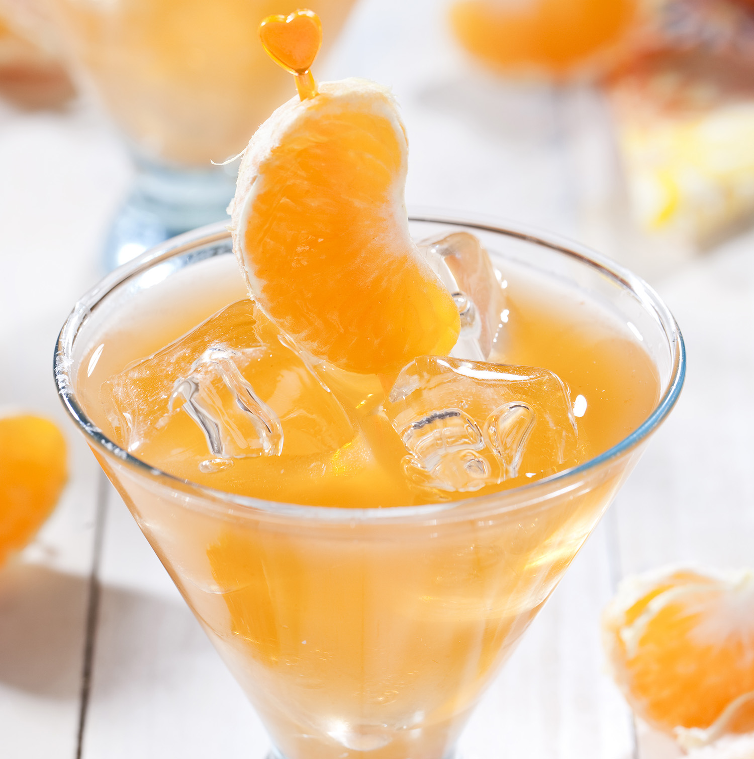 Secouez et soulevez dans une soucoupe de champagne remplie de glace écrasée. Garnir d’une tranche de mandrines ORRI JAFFA, ajouter une paille courte et servir.